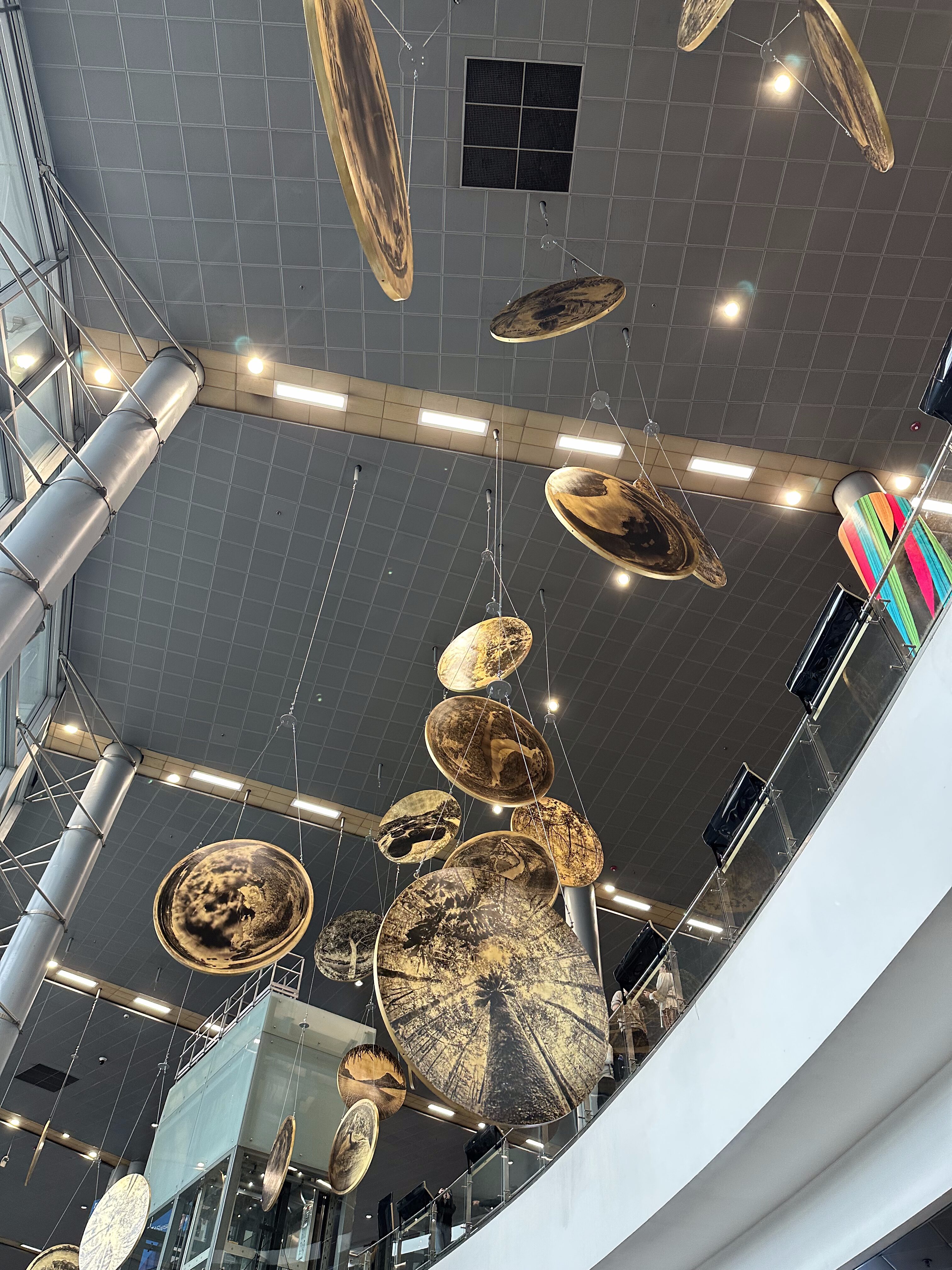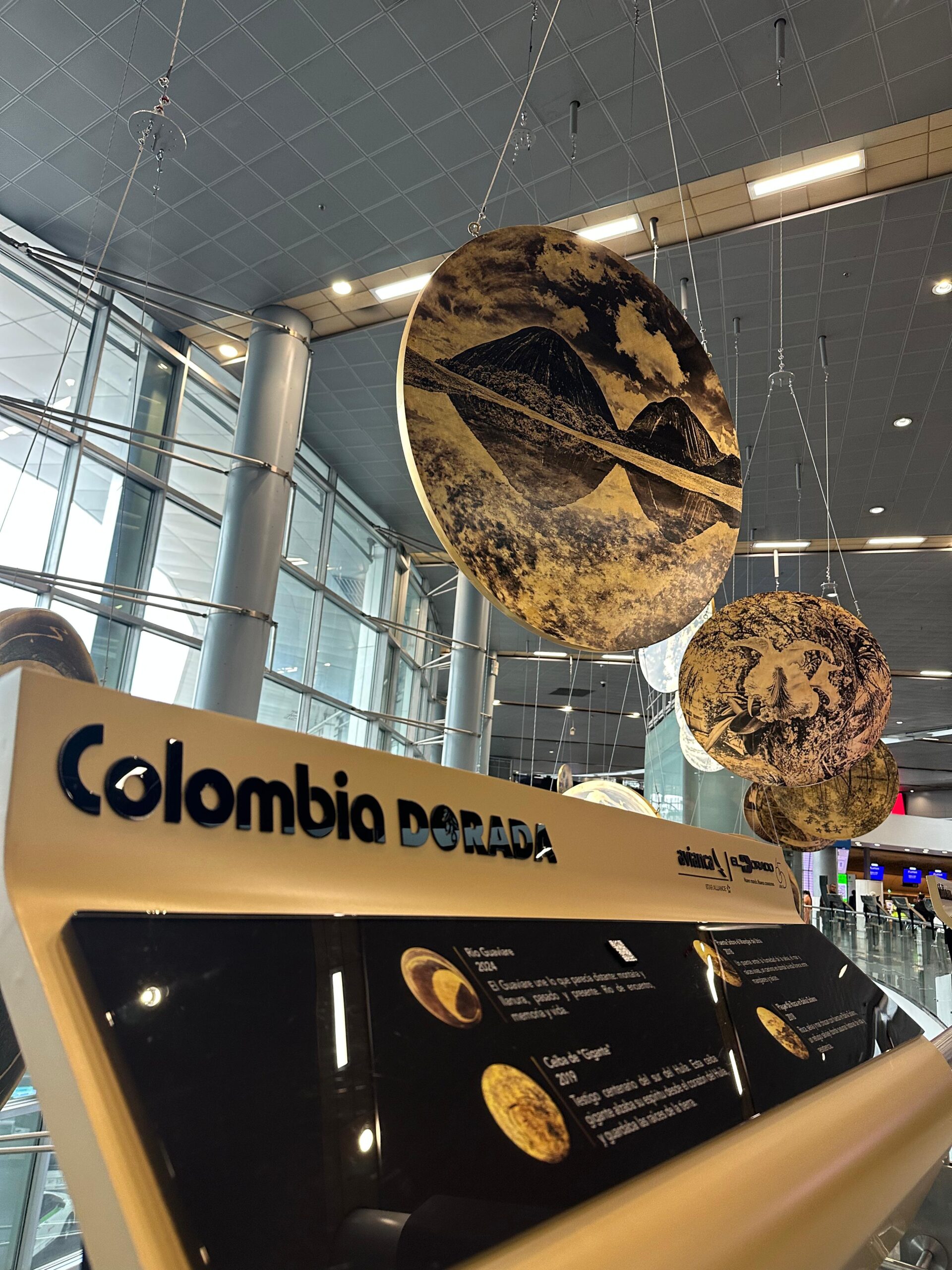 Hasta finales de año, quienes transiten por la Terminal 1 podrán disfrutar de una galería colgante con más de 60 fotografías del artista Roberto Lombana, inspiradas en la leyenda de El Dorado. Cada pieza, de gran formato, combina arte y tecnología: están impresas en MDF dorado con resina y cuentan con realidad aumentada y códigos QR que permiten profundizar en la historia de cada destino.