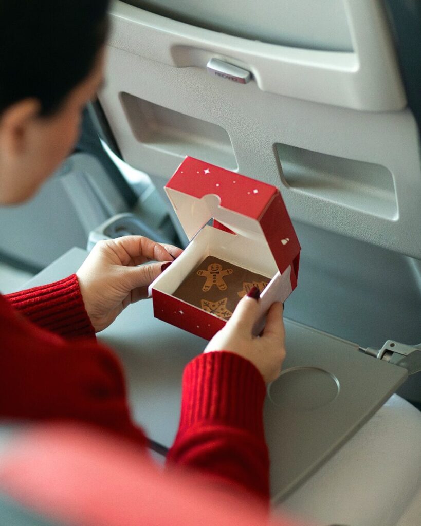 Los pasajeros de Business que volaron el 24 de diciembre recibieron además un obsequio especial: un colgante de cerámica aromatizado con ginger bread para el árbol de Navidad.
